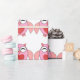 Dieses phantastische Verpackungspapier weist einen niedlichen Cartoon einer rosa Eule mit schläfrigen Augen, einem kleinen Schnabel und niedlichen kleinen Füßen auf. Die Eule hat ein großes Herz aus roter Liebe inmitten ihres Bauches und die Flügel sind weit offen, um jemanden zu umarmen.