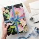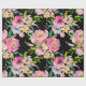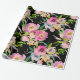 Reizendes Verpackungspapier Watercolorim blumenBlumenblumenstrauß im Licht dennoch in den vibrierenden Farben; erröten Rosa, Flieder, Pfirsichfarben mit dem Grün auf schwarzem Hintergrund. Vervollkommnen Sie, um jedes mögliches Geschenk für irgendeine Gelegenheit einzuwickeln; Hochzeit, Jahrestag, Verlobung, Geburtstag, Party….oder für Handwerksprojekte