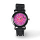 Rosa, lila, mattschwarze, grafische Monogramm-Mädc Armbanduhr