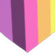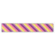 Ein 16" x 108" Tischläufer mit einem niedlichen, farbenfrohen Muster aus diagonalen Streifen in Pflaume lila, Lavendel, Zitronengelb, Melonorange und heller Magenta.