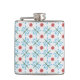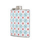 Eine wunderschöne Hip Flasche mit einem Muster aus rosa Wasserlilien und blauen Libellen, aus einer handbemalten Papiercollage von Judy Adamson. Ein wunderschönes Geschenk für jemanden mit einem Geburtstag im Juli; Teil der Posh & Painterly 'Lily Pond' Kollektion.
