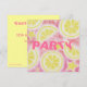 Fruchtige, fizzy, süße und saure… Scheiben der Zitrone, der Blasen und der Sterne schwimmen in rosa Limonade. Party Einladung mit einem des Gelbs, Orange und weißen kundengerechten Entwurf des Rosas, damit Sie mit Ihrem eigenen Text, Bildern und Ideen personifizieren. Eine Vorlage färbte den Bleistift und weiße Tinte zeichnend durch Jess Perry.