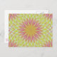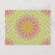 Ein buntes Blumenbild, das eine abstrakte, rosa und gelbe sternförmige Blume ähnlich einem Lotus darstellt.