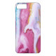 Ein Gehäuse mit abstraktem Design, das eine Mischung aus rosa, weiß, blau und goldfarbenen Farben aufweist. Das Design hat einen Marmoreffekt, die Farben kreiseln und verschmelzen. Die rosa Farbtöne reichen von hell bis dunkel und sorgen für Tiefe und Dimension. Weiß verleiht Helligkeit und Kontrast, während Blau einen coolen Akzent verleiht. Die goldenen Akzente fügen eine Touch von Luxus und Schimmer hinzu. Die Gesamtwirkung ist modern und künstlerisch.