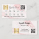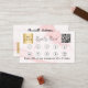 Ein rosa Imitat mit marmorfarbenem Hintergrund, schwarzer Text. Auf der Vorderseite: Fügen Sie Ihren Rabatt hinzu. Zurück: Personalisieren Sie Ihren Namen, Titel, Telefonnummer, E-Mail, Website-Adresse, Firmenlogo, qr-Code auf Ihrer Website oder Ihrem Social-Media-Konto und fügen Sie ihn hinzu.