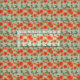 Feines, hellorangefarbenes und dunkelgrünes Mohngewebe, gemusterte Blume. Die Hintergrundfarbe kann bei Bedarf geändert werden. Grafik und Design von Sarah Trett.
