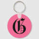 Wählen Sie Ihre erste Schrift in gotischer, alter englischer Schrift in einem Retropinke und schwarzer Farbe.