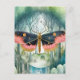 Eine zarte rosa und braune Motte vor dem Hintergrund eines blauen und grünen geheimnisvollen Waldes.