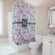 Personalisieren Sie diesen niedlichen Dinosaurier-Duschvorhang mit dem ersten Monogramm Ihres Single in weißer Schrift für eine coole Touch! Dieses farbenprächtige Design wurde speziell für Dino-Liebhaber entwickelt und zeichnet sich durch rosa, lila und minzgrüne Dinosaurier-Illustrationen auf einem rot-rosa Hintergrund aus.