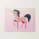 Ein Puzzle mit nordischem Flair. Ein schönes Dainty-Einhorn mit schwarz fließender Mähne und Geschichte. Weiße Blume Doodles zeichnete über den ganzen Körper.