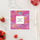 Papierservietten mit einem coolen trippy-psychedelischen Design. Rosa, Orange und blaue Farbtöne, die sich alle umkreisen. Retro Hippie Vibe.