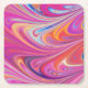 Papier Untersetzer mit einem coolen trippy psychedelischen Design. Rosa, Orange und blaue Farbtöne, die sich alle umkreisen. Retro Hippie Vibe.