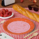 Rosa Orangefarbene Party-Papierplatte Pappteller