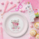 Rosa Teller für den Osterbrunch mit wunderschönen Frühlingsblumen im Topf und Ostereier in Rosa und Grau. Personalisieren Sie den Text einfach oder verließ ihn leer. - Kate Eden Art.