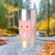 Insulated Tumbler Eulendesign, dass Sie mit jedem Text Ihrer Wahl anpassen können. Wenn Sie Hilfe bei der Anpassung benötigen, kontaktieren Sie uns über den Link auf dieser Seite. Rosa Uhu Design personalisierter Tumbler
