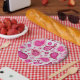 Rosa Paisley-Muster in den verschiedenen Schatten des Rosas auf einem weißen Hintergrund