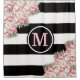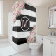 Rosa Peonys Schwarz und Weiß Streifen Monogramm Duschvorhang
