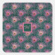 Rosa PfauenFedern und Monogramm auf Grün Quadratischer Aufkleber