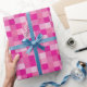 Dieses Packpapier kennzeichnet Quadrate in den verschiedenen Schatten des Rosas in einem pixelated Muster.