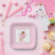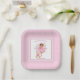 Ballerina, rosa Blume, weiße Polka-Punkte anpassbare Papierplatte.