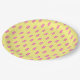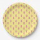 Diese Partyplatte kennzeichnet ein wiederholendes Muster von rosa Popsicles über einem gelben Hintergrund.