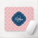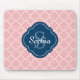 rosa Quatrefolienmuster Navy Monogram Mousepad