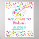 Herzlich willkommen bei Ihren Party mit einem personalisierten Schild. Zeichnen Sie das Schild auf einen Tisch in der Nähe des Eingangs, oder befestigen Sie das Poster auf Schaum und zeigen Sie es draußen auf einem Aal an. Das Design zeichnet sich durch farbenfrohe Regenbogenfarben-Spritzer aus.
