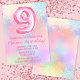 Rosa Regenbogen 9. Geburtstag Einladung Girly Pink Glitzer Geburtstagsfeier Einladung für ein 9-jähriges Mädchen mit modernem Drehbuch und lustigen Folienballons.