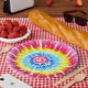 Diese lustige Platte zeigt eine rosa Regenbogenspirale in der gefärbte Krawatte. Wenn Sie Text hinzufügen möchten, verwenden Sie die Option "Weitere Anpassung".