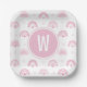 Rosa Regenbogen und Blume Monogram Babydusche Pappteller