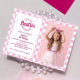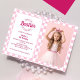 Rosa Retro Doll Foto Geburtstag Einladung