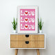 Rosa Retro-LIEBE-Typografie mit roten Herzen Poster