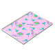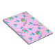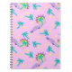 Dieses rosa Notizbuch bietet lustige Retrothemen wie Palmen, klassische Autos, Sterne und einen Sonnenuntergang.