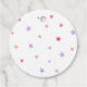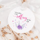 Niedliche Bowling Thema Mädchen Geburtstagsfeier Gefallen Tag mit Aquarellbild eines Bowlingball treffen einige Buttone mit rosa und lila Sternen fliegen. Im Text steht: "Danke, dass du mitgemacht hast."