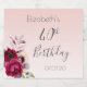 Ein Label für ein 40. Party. Eine gürtliche und elegante weiche Rose goldfarben Hintergrund. Die Blume sind in dunklen, lila, bordeauxfarbenen und in Rose rosa gehalten. Vorlagen für einen Namen und ein Datum. Der Text: 40. Geburtstag ist in dunkelgrau geschrieben mit einem großen modernen handgeschriebenen Schrift.