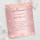 Ein modernes, elegantes Hochzeitsprogramm, Zeitleiste. Rosa Untergrund mit goldenen Rose-Imitaten Glitzer Staub. Personalisieren und fügen Sie Ihre Namen und Hochzeitsdetails. Schwarze Buchstaben. Wenn Sie mehr Text haben, ist es möglich, den Zeilenabstand zu verringern.