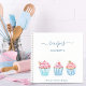 Ein weißer Hintergrund. 3 Kuchen in Rosa und Blau. Personalisieren und fügen Sie Ihren Namen und einen Titel hinzu.