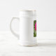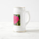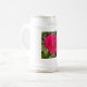A 22oz, White/Gold, Stein, (Tasse), mit einem Bild einer schönen rosa Rose auf ihm mit weißem Hintergrund.