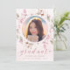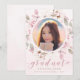Schicken Sie Ihrer Familie und Ihren Freunden eine personalisierte, blumengeschmückte gerahmte Foto 2025 Abschluss-Ankündigungskarte, um sie zu beeindrucken. Dieses moderne Template-Design bietet Ihnen ein Foto, um Ihre eigenen gerahmten in Hand gestrichenen, rot-rosa Aquarell-Rose mit Grün auf einem Hintergrund von rot-violetten Wasserfarbenwäsche. Unter Ihrem Foto steht das Wort "Graduate" in der modernen handgeschriebenen Schrift Typografie und Ihr Name, Schule und Jahr zum Personalisieren. Auf der Rückseite der Karte befindet sich ein passendes rosa Aquarellspülen. Entworfen von Susan Coffey.
