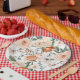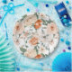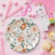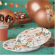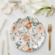 Romantische Rose, Pfirsiche, Blüten, Eukalyptusblüten, Blätter in sanften Orangen, Pfirsichgrün und Creme auf weißem Hintergrund. Ein feminines Design in sanften Farbtönen, das sich perfekt für Ihr nächstes Baby-, Polterabend- oder Geburtstagsfest eignet.