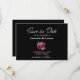 Informieren Sie Ihre Freunde und Liebsten über Ihre zukünftige Hochzeit mit dieser rosa, schwarz rettend Karte, um sicherzustellen, dass sie sich für die Zeit frei, wenn nötig, um sicherzustellen, dass sie an Ihrem besonderen Tag.