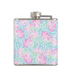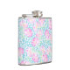 Ein hübscher Hip Flask mit einem Muster aus hellrosa Rosen auf himmelblauem Hintergrund, gepunktet mit kleinen weißen Schmetterlingen. Als Teil der Posh & Painterly 'Summer Days' Kollektion kann dieses Muster an jede Hip Flasche angepasst werden.