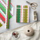 Verwöhnen Sie Ihre Geschenke mit einem lustigen und modernen Muster von geschliffenen Streifen Säulen. Dieses Muster ist eine Mischung aus Rot-, Rosa- und Grüntöne-Jakobsmuscheln und fühlt sich frisch und feierlich auf einem knackigen, weißen Hintergrund an und bringt ein Gefühl von grafischer Laune in den Geschenkstapel.