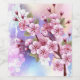 Künstlich gezeichnet, Zweig von Rosa, Kirschblüten auf malerischem, strukturiertem Hintergrund, mit Weiß-, Rosa- und Blautönen übermalt. Pink Sakura
