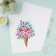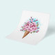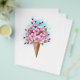 Süßer Waffelkonus mit frischen, rosafarbenen japanischen Kirschblüten auf weißem Hintergrund mit blauen Wasserfarben. Rosa japanische Kirsche.