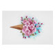 Süßer Waffelkonus mit frischen, rosafarbenen japanischen Kirschblüten auf weißem Hintergrund mit blauen Wasserfarben. Rosa japanische Kirsche.