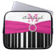 Diese personalisierte, rosa, schwarz und weiß gestreifte Laptop-Hülle mit einem Hot-Rosa-IMITAT-Band und Kristallbrosche enthält Textfelder, die Sie mit Ihrem eigenen Namen, Ihren Initialen, Ihrem Firmennamen oder anderen Texten anpassen können. Wenn Sie Hilfe beim Anpassen benötigen, senden Sie bitte eine E-Mail an niteowlstudio@gmail.com.
