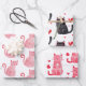 Rosa schwarze Katzen hören Geburtstag Geschenkpapier Set