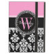 Vintage Damaskus-Muster für Mädchen, Schwarz und Weiß mit Monogramm Initial und Name mit rosa Akzent. Personalisieren Sie mit Ihrem Namen und Ihrem Monogramm. Design von Elke Clarke ©2011. Zur Verwendung lizenzierte Grafiken.