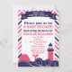 Diese niedliche Einladung hat viele Spaßelemente zu ihr, beginnend mit der Zickzack Grenze in den Schatten des Rosas, des Marineblaus und des Graus. Eine blaue Ankerfahne liest Anker weg! Eine kleine Dame ist auf ihrer Weise! Ein Rosamädchenwal schwimmt das Ozeanwasser, während ein Leuchtturm im Abstand sitzt. Personifizieren Sie diese Einladung mit den Details Ihrer SeeBabyparty oder besprühen Sie. Die Rückseite hat viel des Raumes zu Registerinformation und anderen Details.